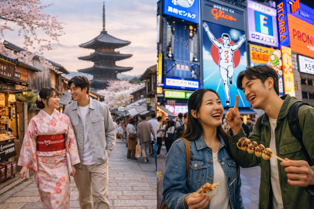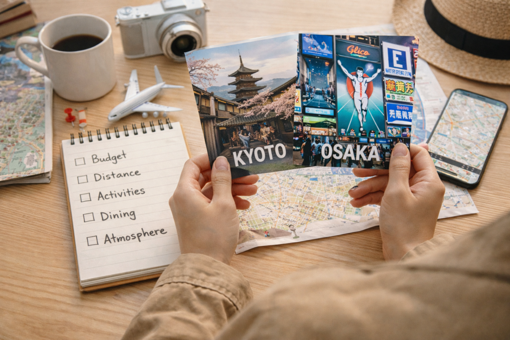 처음 가는 여행자라면 오사카가 더 편하고 실패 확률이 적어요. 반대로 “일본다운 장면”을 오래 기억하고 싶다면 교토가 훨씬 인상적으로 남습니다.
