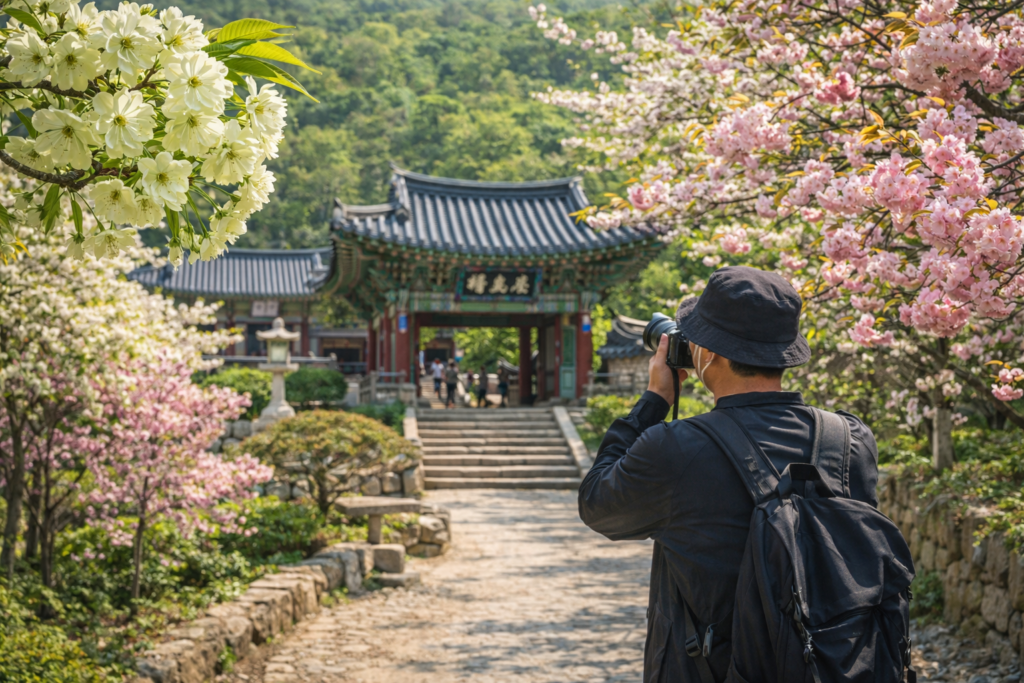 개심사의 진짜 매력은 꽃 단독샷보다 한옥 처마, 산사 마당, 고즈넉한 길과 함께 담을 때 살아납니다. 풍경샷과 인물샷을 같이 준비하면 블로그나 SNS용 사진 퀄리티가 확 올라가요.