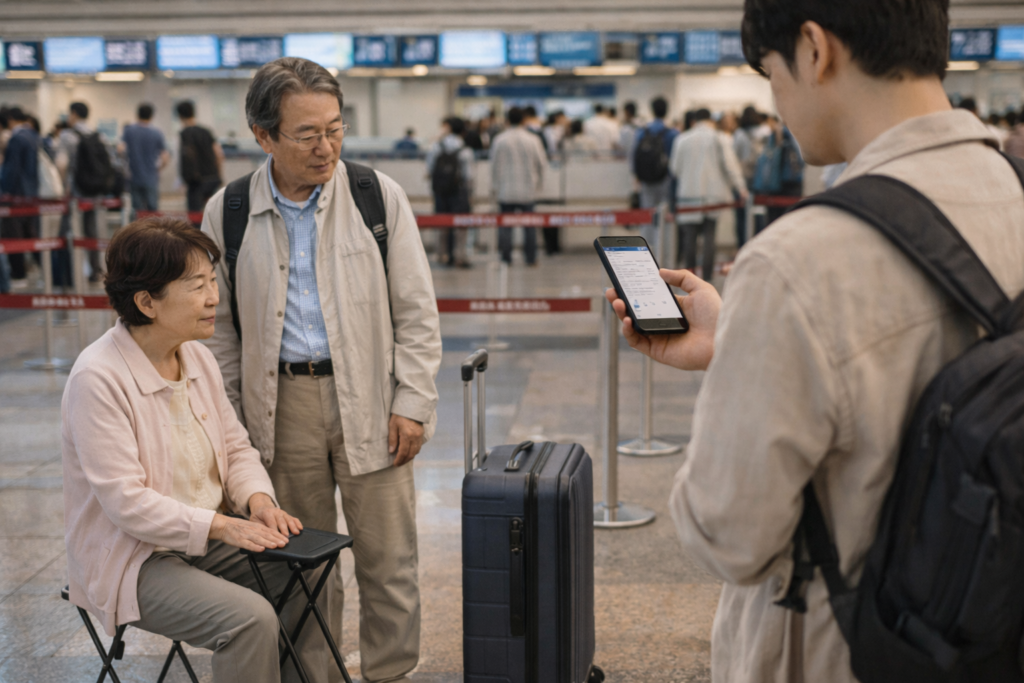 부모님과 4월 해외여행을 준비하다 보면 생각보다 오래 서 있어야 하는 순간이 많아요. 공항 체크인 줄, 입국 심사, 셔틀버스 대기, 인기 관광지 줄 서기까지. 특히 무릎 통증이 있는 부모님은 짧은 대기 시간도 크게 힘들어하실 수 있습니다.