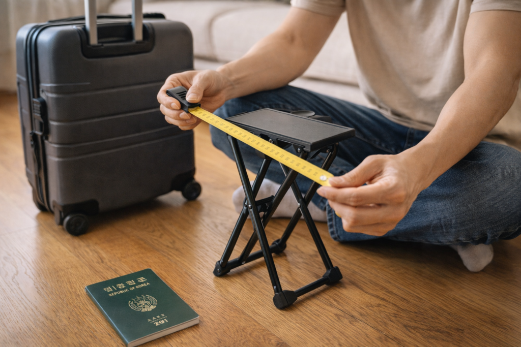 의자가 아무리 가벼워도 접었을 때 너무 길거나 두꺼우면 기내 반입이 어려울 수 있어요. 항공사는 대체로 휴대수하물 크기 제한을 두고 있고, 머리 위 선반이나 앞좌석 아래에 안전하게 들어가야 합니다. 그래서 구매 전에는 펼친 크기보다 접은 뒤 길이와 두께를 먼저 보셔야 해요.