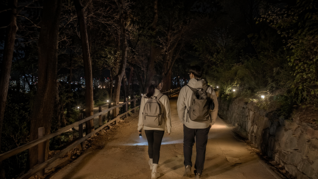 야간 산행에서 가장 중요한 건 풍경보다 안전입니다. 초보자라면 헤드랜턴만 믿고 어두운 흙길로 들어가는 코스보다, 공원등·계단 조명·성곽 조명이 있는 곳을 우선 선택하는 게 좋아요.