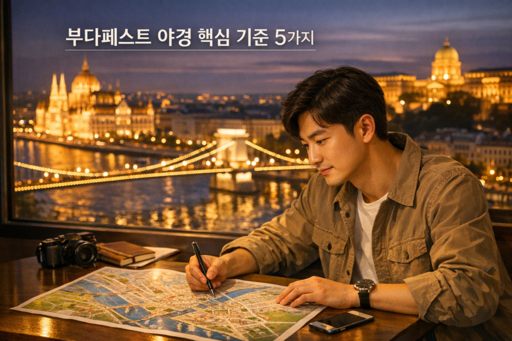 부다페스트 야경은 어디서 봐도 예쁘지만, “어디서 어떻게 보느냐”에 따라 만족도가 정말 크게 달라져요. 아래 5가지를 기준으로 잡으면 실패 확률이 확 줄어듭니다.
