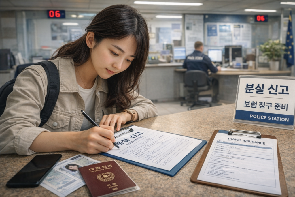 여권은 일반 물품보다 민감합니다. 보험 청구 외에도 재발급 또는 여행증명서 발급 절차가 함께 이어질 수 있어요. 경찰 신고서가 있으면 상황 설명에 도움이 되지만, 국가·기관에 따라 처리 절차는 다를 수 있습니다.