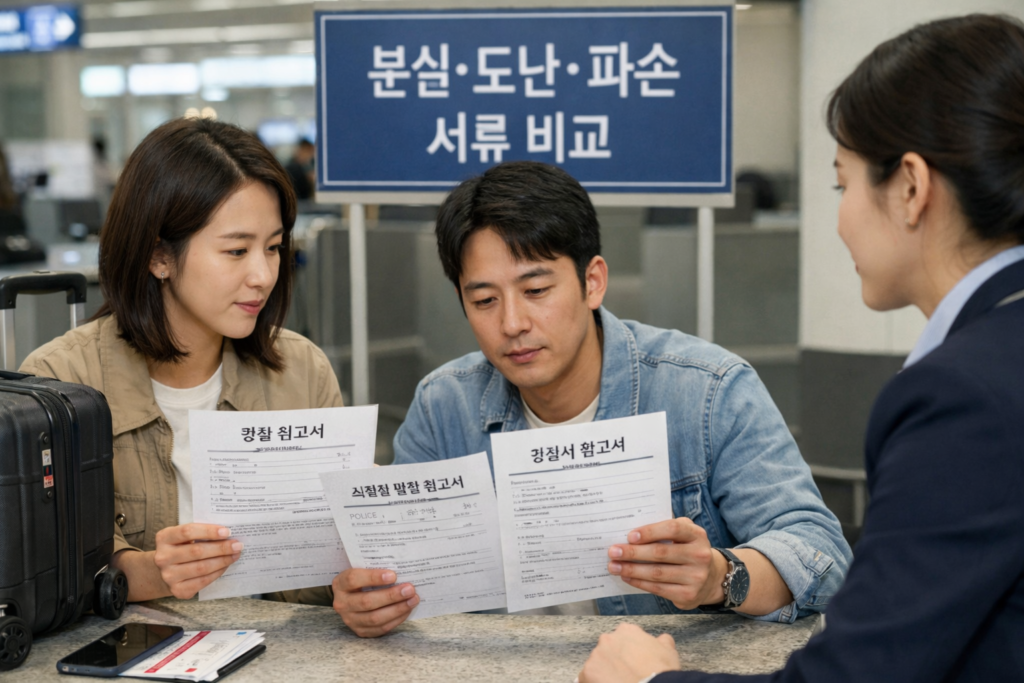 공항 수하물 문제는 경찰서보다 먼저 항공사 카운터에서 PIR을 받아야 하는 경우가 많고, 호텔 객실 내 도난은 프런트 확인서가 함께 필요할 수 있습니다. 현지 경찰 신고만으로 끝나는 사고와, 서비스 제공자 확인서까지 필요한 사고를 구분해야 해요.