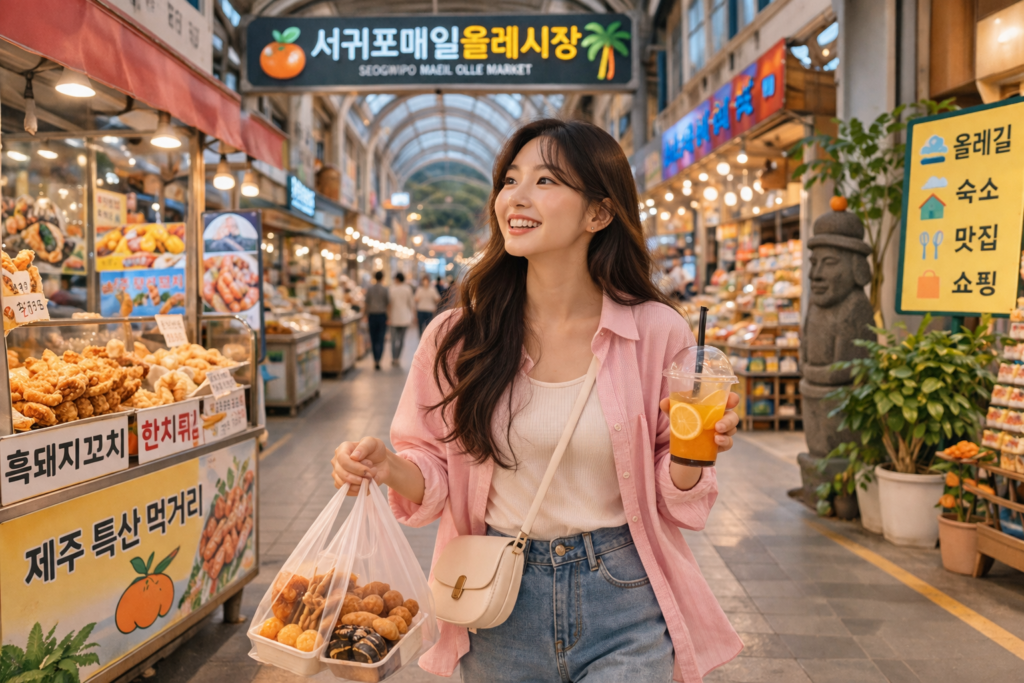 | 서귀포매일올레시장 | 제주 서귀포 | 간편식, 특산 먹거리, 포장 메뉴 | 관광형, 접근 쉬움 | 제주 혼행자 | 8,000~18,000원 |