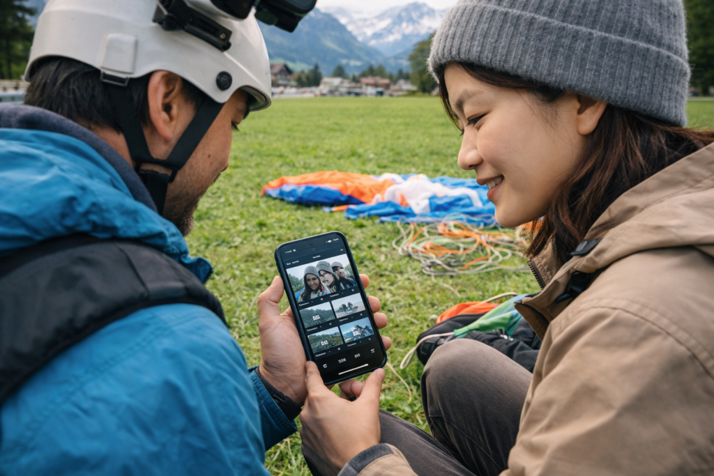 인터라켄 패러글라이딩에서 완전 무료 영상 제공은 흔하지 않습니다. 대신 핵심은 촬영 패키지를 결제했을 때 편집본만 받는지, 원본까지 바로 복사해주는지입니다. 이 차이가 실제 만족도를 크게 좌우합니다.